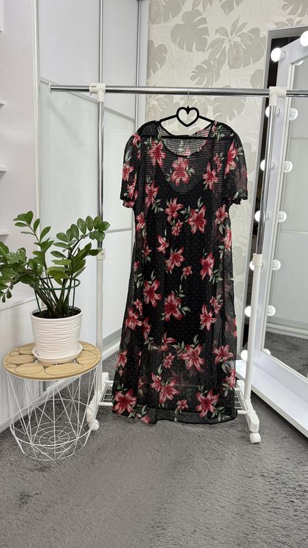 Гарна шифонова сукня в лілії, р.26-28, стан ідеальний, як новенька, без дефектів. Верх сукні на резинці. довжина 126 см, довжина до резинки 41 см. ог 120-140 см. от 126 см. ос 170 см.