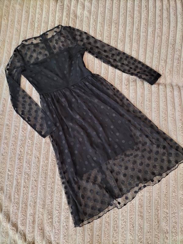 🖤 Элегантное черное длинное платье с сеточкой в горошек ~на спинке молния Размер: 42 (подойдет на xs-s) Замеры: грудь- 40-45 талия- 34-36 длина от плеча- 100 длина рукава- 60 ✅Платье в идеальном состоянии, без дефектов, как новое