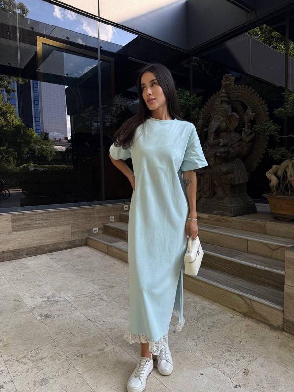 Сукня🥰 Мод :1420-264 Розмір: універсал Тканина: кулір (Туреччина)+ мереживо Колір: чорний, графіт, блакитний Ціна- 819 грн🔥 ОГ-ОС 118 см Довжина 125 см