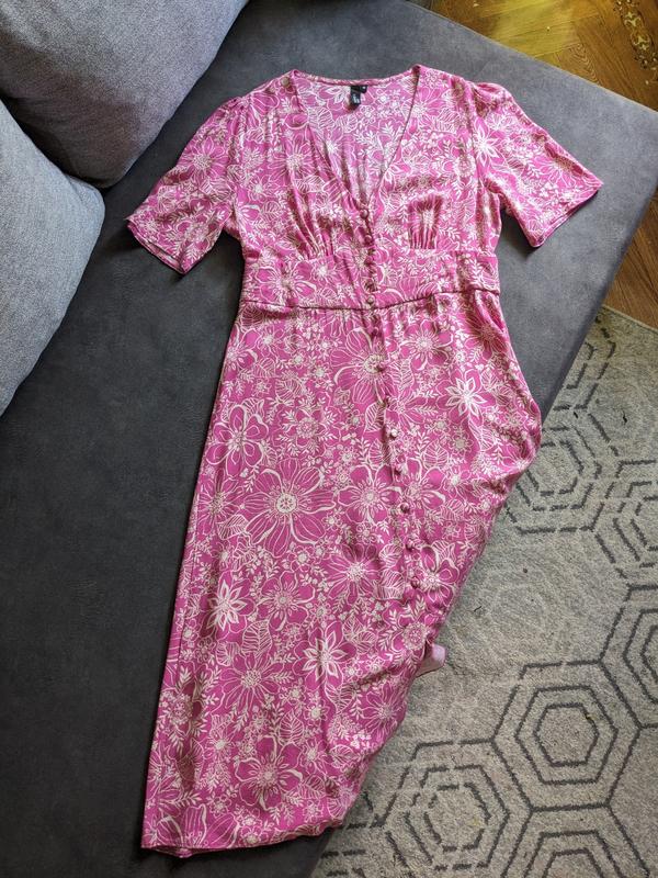 Красивое платье из натуральной ткани украшено пуговицами. Замеры: Полуобъем груди 47 см. Полуобъем талии 40 см. Полуобъем бедер 57 см. Длина 115 см. Длина рукава 26 см. Стан идеален. Без дефектов. Размер 12/М.