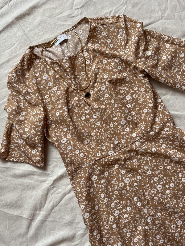 Красива, літня сукня темно бежевого кольору Бренду VOVK Розмір сукні 34/XS Заміри: Плечі 40см, Пот 36см, Довжина 115см, рукав 28см