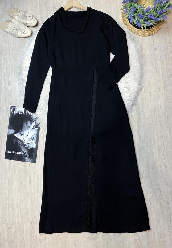 Стан відмінний колір рівномірний насичений чорний Під темну білизну довжина 131 довжина розрізу спереду 40 напів об’єм грудей 49 напів об’єм талії 38 напів об’єм стегна 54 рукав від шиї70 Плечі 39