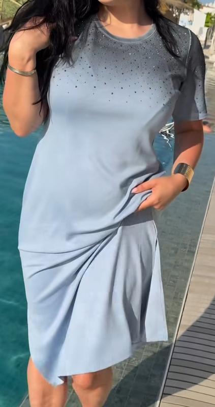 платье летнее омбре,верх в камушках тканина трикотаж двунитка на ог 110-115 длина 119 сбоку разрезы