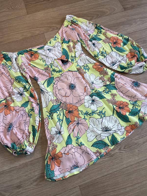 Плаття на підкладці, романтичне, приємне до тіла, нове, але обрізала завʼязки (видно на останньому фото) склад віскоза/район, довжина 66см., рукав 62см., Пог 45см., талія 33см.