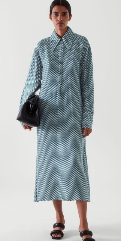 Элегантное платье-рубашка свободного А-силуэта из смеси купро и Tencel™ с эффектным геометричным принтом дополняется большим воротником и объемными рукавами. Бантовая складка обеспечивает свободу движения. - Заниженная пройма, длинные рукава с манжетами - Потайная застежка на пуговицы - Купро —биоразлагаемая ткань, изготавливаемая из хлопкового линта — излишков волокон, которые обычно выбрасываются 50% купро, 50% лиоцелл Tencel™ / Машинная стирка Длина по спине для размера EU 36 — 127