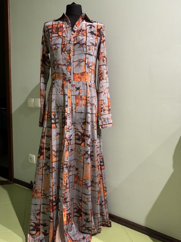 Платье в пол, размер S. Замеры: длина 147 см, п.объем груди-45 см, плечи-39 см, п.объем талии-40 см, длина рукава-61 см, п. Объем в области бедер-58 см