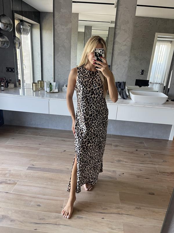 Довга атласна сукня в леопардовий принт