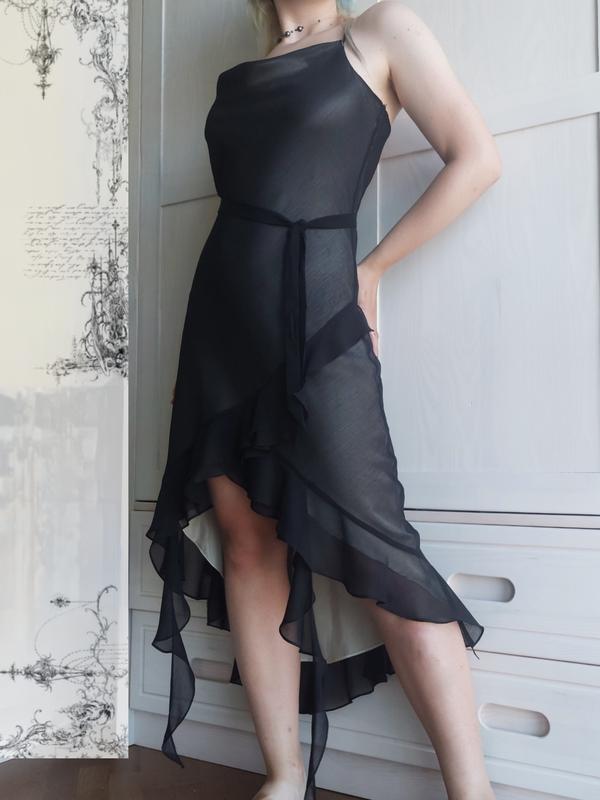 ~Черное платье медузы~ •супер изящная и невероятная~ Стан 9.5/10 Размер М-L (Огнуто на М) °двух слоевная, очень красиво переливается° °на одной из сторон, имеет интересный едва заметный узор° Замеры: Длина изделия короче 84 длиннее 131 Объем в груди полуобхват 50 Талия полуобхват 47 По дополнительной информации обратитесь в сообщение