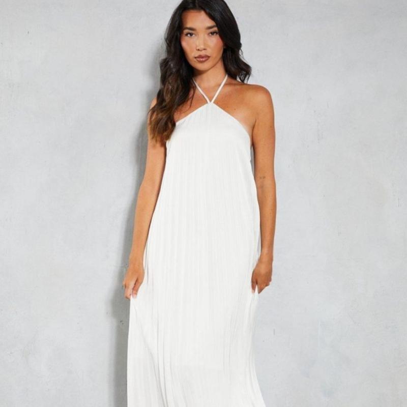 Гладкая атласная ткань излучает роскошный блеск Плиссированные детали добавляют элегантности движению Воротник-халтерн обрамляет декольте Низкий вырез на спине создает соблазнительный вид Длина макси создает гламурный силуэт Произменяйте уверенность на следующем официальном мероприятии в этом впечатляющем платье MissPap. Гладкая атласная ткань отлично драпируется, а плиссированные детали добавляют нотку изысканности. Воротник-халтерн и низкий вырез на спине создают захватывающий образ, который обязательно привлечет внимание. Создайте образ с ремешками в каблуке и эффектными украшениями для гламурного вечернего ансамбля, который излучает легкую привлекательность.