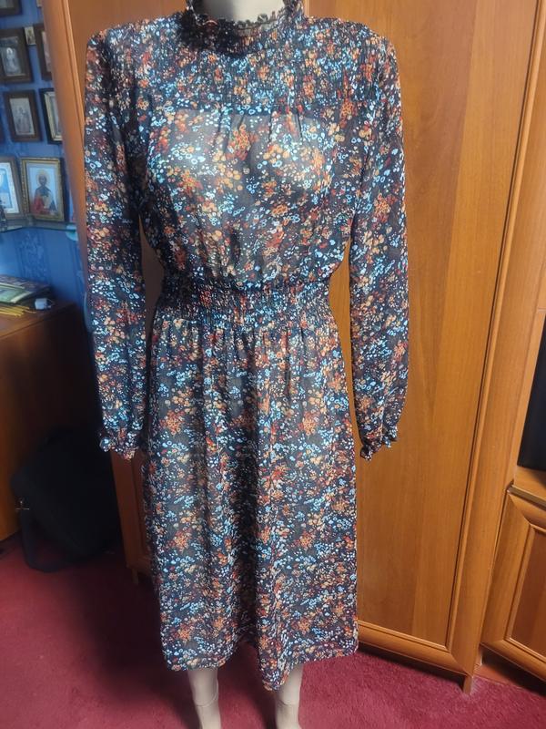Платье подойдет для ужинов, для повседневного и разного отдыха. размер 44-46. длина 108, ширина 54, талия 33, рукав 61. талия, горловина, рукав все на красивых сборе-резинках. платье прозрачное, по желанию можно поддеть рубашку красивую. состояние новой.