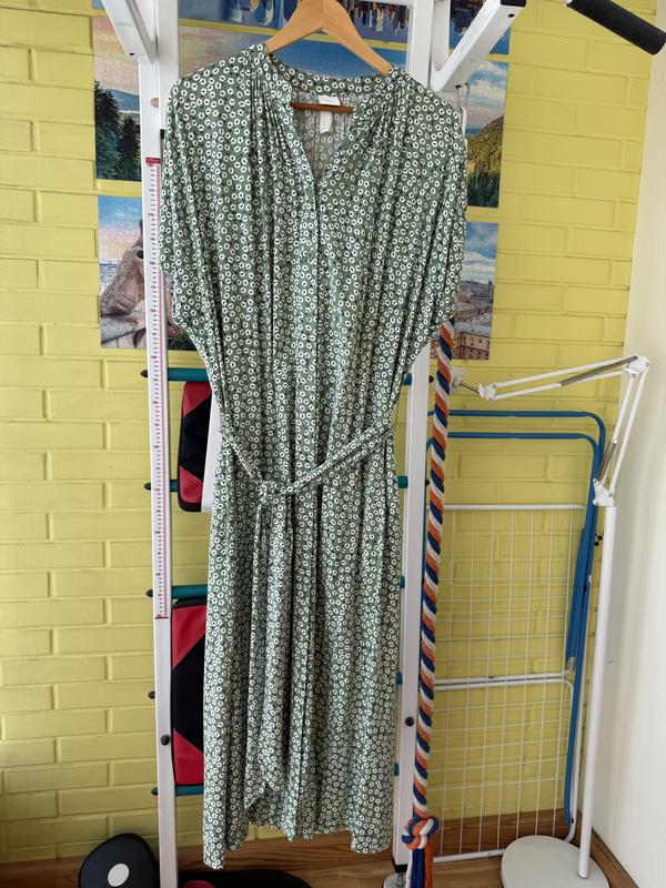 Красивое качественное платье на пуговицах. Плотная приятная вискоза 100% Свободный прямой фасон под поясок. Хорошее качество, нежная расцветка Имеет 2 кармана. Хорошая длина 126 Рукав 30 Подмышки75 Плечи60 Объем бёдер 70 В идеальном состоянии