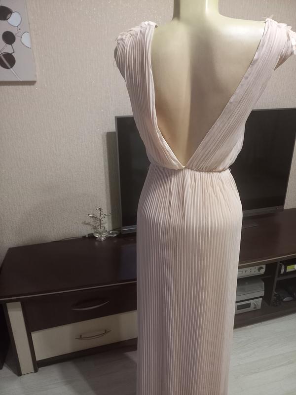 Шикарное нарядноемакси платье плиссе с открытой спиной персикового цвета, 8/s/36, miss s...