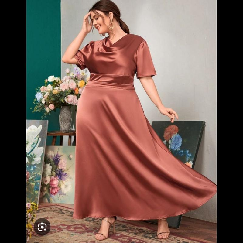1XL Shein на 52-54 размер вечерний коктейльное длинное атласное платье в очень красивом почти идеалтном состоянии- есть микрозацеп(не существенно) ПОГ 53см ПОТ 47см. Тканина тягнеттся дуже слабо.