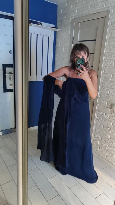 Длина от лифа 130 см, ПОГ 53 см на лифе есть спиночная лента,также на спине есть фиксаторы для ленты, ПОТ 946 со стороны есть молния, ПОС 65 см. В составе ткани есть ацетат