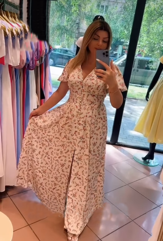 Нежное летнее макси платье, цветочный принт. Отличный вариант для жарких дней! На талии сзади есть ризиночка и сбоку молния, поэтому не будет давить и подойдет на любимую талию. Размер S Замеры: длина 129см, ПОГ 38см, ПОТ 32см. Внизу есть места где платье зашилось, также немножко потертый оставшейся пуговица. Есть дополнительная новая пуговица под замену. Но при носке этих недостатков не заметно. Фото с дефектами находится в ленте.