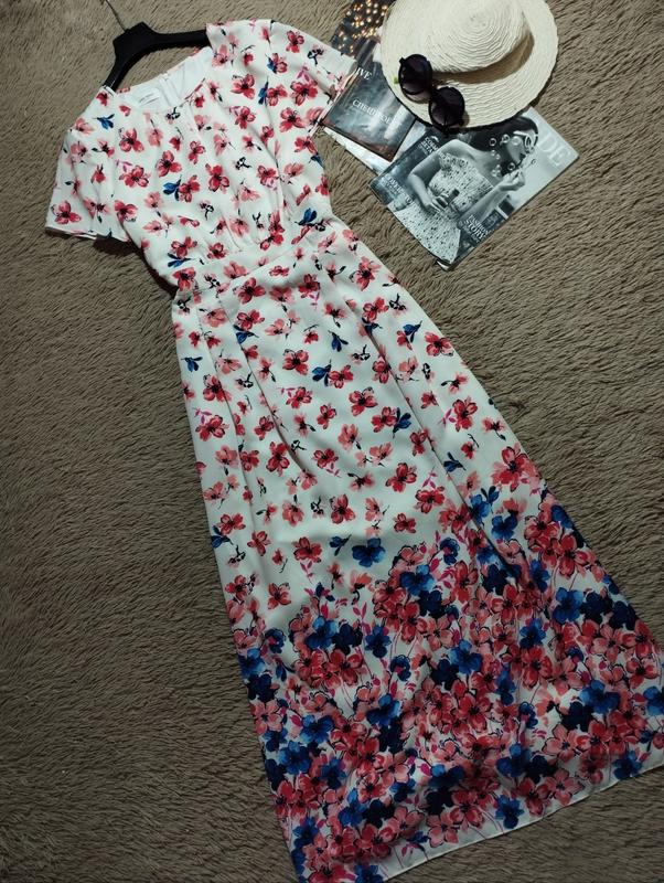 В идеальном состоянии. Красивое длинное цветочное платье. Ткань легкая, есть подкладка, не тянется.... Выглядит супер 😍 Размер 12/40/L, но смотрите по замерам Замеры (полуобхват): Груди 51 Талия 42 Бедра60 Длина от плеча 141