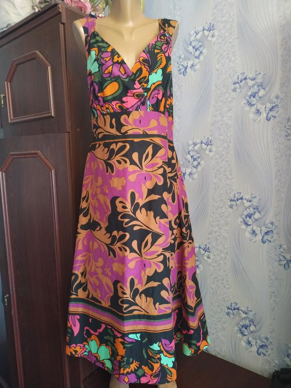 Стан хороший♥️.Не тянется. С подкладкой.. Все бавовна. Сбоку замочек. производитель указал размир 18 👗 Пог-61-62 см. ♥️ Поталiя 48-54 cм ( ззаду резиночки тягнуться)+ поясочок назад Постегна 67 см Длина 130 см