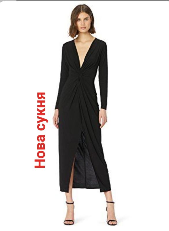 Новое с биркой длинное черное платье h&m с длинным рукавом и разрезом спереди, драпиро...