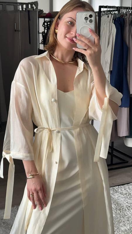 Платье накидка из воздушной вуали Одягала один раз, класна альтернатива кардиганам на літо 2200 грн Цвет сливочного масла В комплекте есть тонкий пояс Длина - 122 см