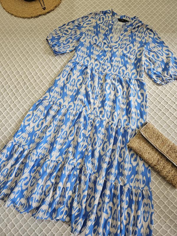Легкое, воздушное, натуральное, ярусное миди платье рубашка свободного кроя. 100% выскоза! Р. М- L