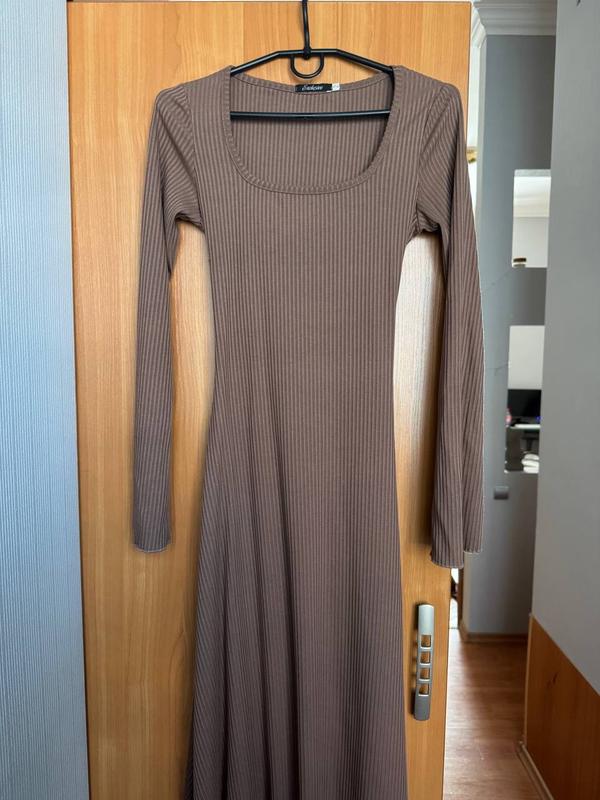 довга коричнева сукня у рубчик з завʼязками на спині розмір с-м (заміри по запиту)