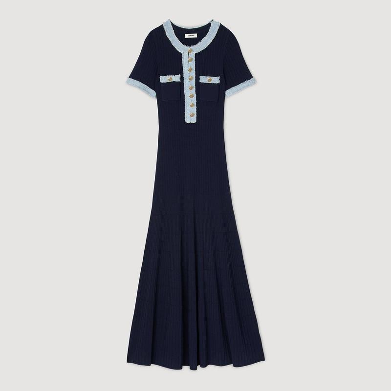Пожалуйста, пишите в чат размер перед оформлением заказа! ❤️😘👌🌹 ✅ Оригинальный с ценником. Новое платье с бирками от Sandro. Качество отличное, плотное трикотажное темно-синее платье, которое садится по фигуре идеально благодаря фактуре ткани. Трикотаж с денимом. Возможно под заказ варианты в белом или голубом цветах. Цена на сайте производителя: 29597. Ref: SFPRO03397 SIZE: S / M / L ✔️Возвращение возможно. Upper main fabric: 53% viscose, 46% polyamide, 1% elastan. S Length 136 Shoulder 30 Sleeve 23 Bust 46 M Length 137 Shoulder 31 Sleeve 24 Bust 48 L Length 139 Shoulder 32 Sleeve 25 Bust 50