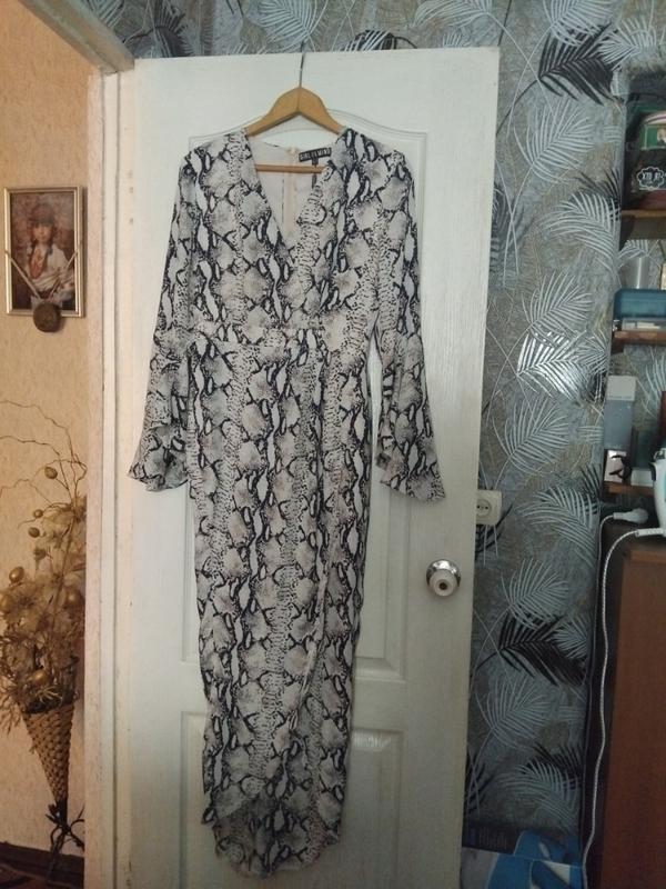 Стильное, легкое платье с подкладкой. Зад удлиненный,рукав расклешенный.