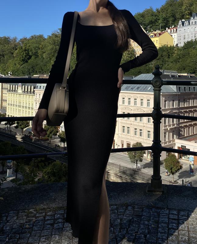 Базова стильна сукня в рубчик. Довга , чорна , з розрізом . Хороша якість . Ідеально підходить на осінь , можна одягати як на святкову подію та і на повсякденне життя.