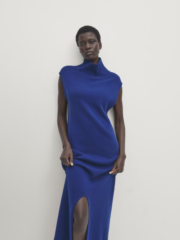 длинное платье от массимо дутья воротой стойкой без рукавов шерсть: 60%, выскоза: 35%, кашемир: 5%