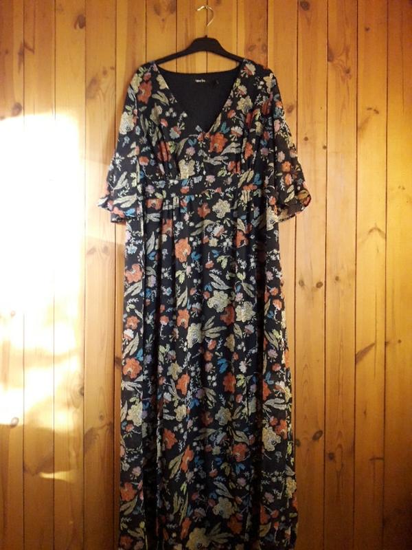 Длинное платье большого размера Стан - идеальный Полуобъем груди 53 см Длина платья 150 см Платье имеет подкладку и два разреза с переда