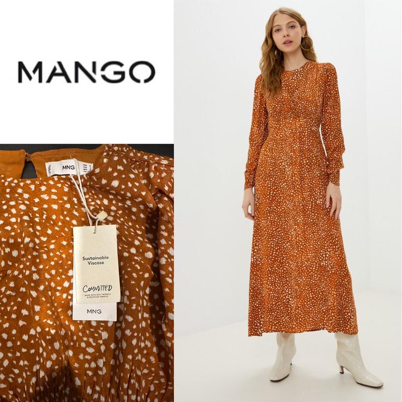 Стильное оранжевое макси-платье в крапиночку от Mango. Качественная, легкая, интересная. Размер указанного: М, подойдет на S/ M
