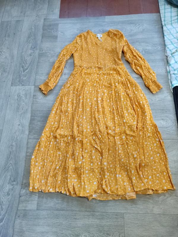 С подкладкой, сбоку молния для удобства, длина 123 см,грудь 44-46 см.