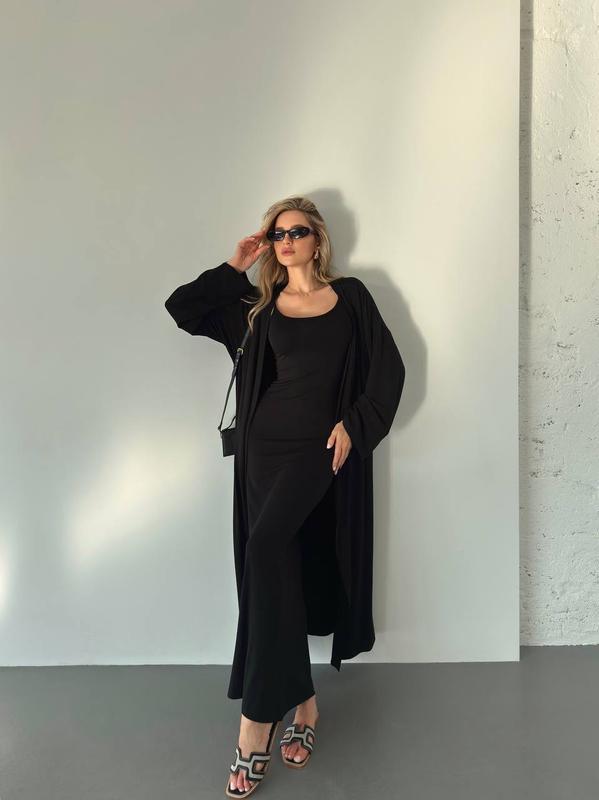 Комплект🥰 (Сукня+ кардиган) Мод: 4942-385 Розмір: 42-44, 44-46 Тканина: турецька якісна віскоза Колір: чорний, шоколад, лимон Ціна- 1269 грн🔥