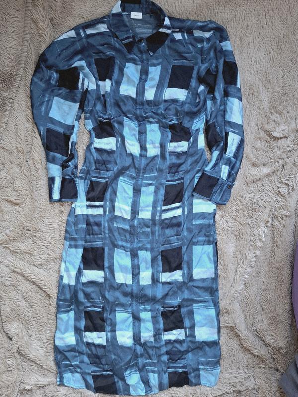 Длинное платье-рубашка S.Oliver Размер S-M. Параметры: - длина 120см - полуобхват талии 37см - застегивается на пуговицы - манжети на гудзиках - вытачки под грудью - талия сзади на резинке - есть шлевки для бретелей белья - запасные пуговицы Материал: 100% вискоза. Дополнительные фото – по запросу. Фото на теле нет. Оплата - Безпечна оплата Доставка - Нова Пошта