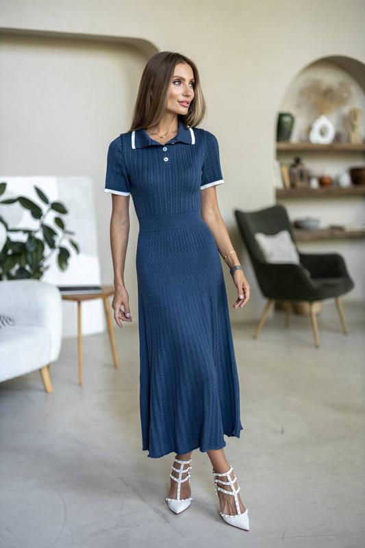 Длинное хлопковое вязаное платье поло (7 цветов) платье с комиром