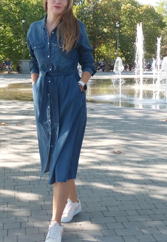 Длинное платье-рубашка, застегивается на кнопки, есть пасок со шлейками, четыре кармана, два сверху, и два боковых, от бренда Free/Quent. Размер М. В идеальном состоянии, без нюансов. На фото одета на параметры: рост 173 см, 91-72-91 (около), подойдет и на более крупные параметры, и на небольшой L.