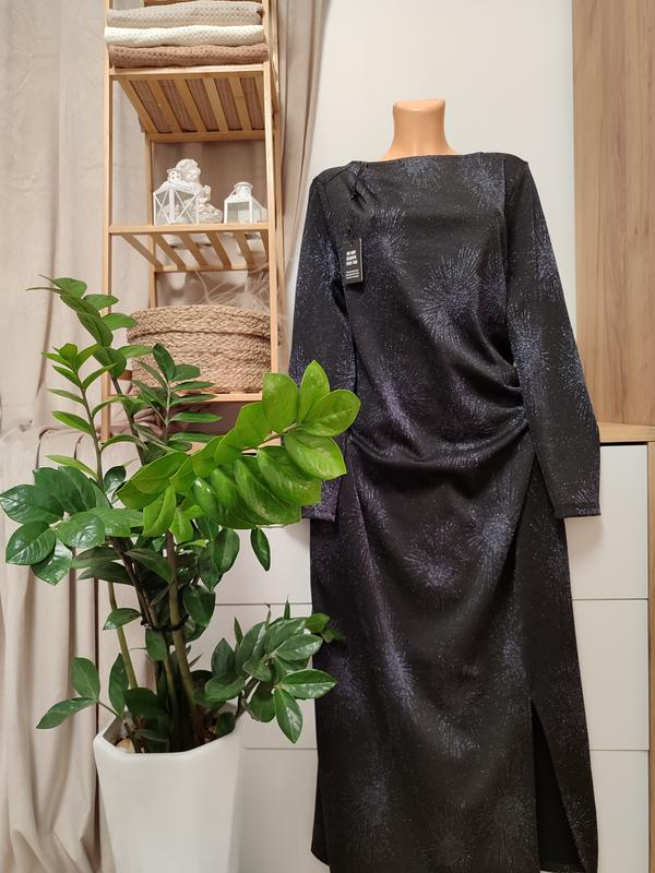 Платье сочетает в себе изысканную сдержанность черного и сияние серебра, в ней легко чувствовать себя неповторимой для праздничного момента. Длина 136, ПОГ 55, ПТ 50, ПОБ 55, на ножке разрез 40, сбоку легкая драпировка, красиво маскирующая определенные погрешности. Указано европейское 18, хорошо тянется. крести подписываться, есть много хороших вещей и частое обновление товара!