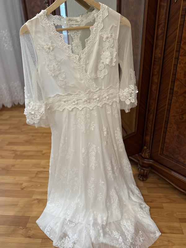 Сукня мереживна, колір айворі, розмір m-l, 9 з гарним вирізом на грудях