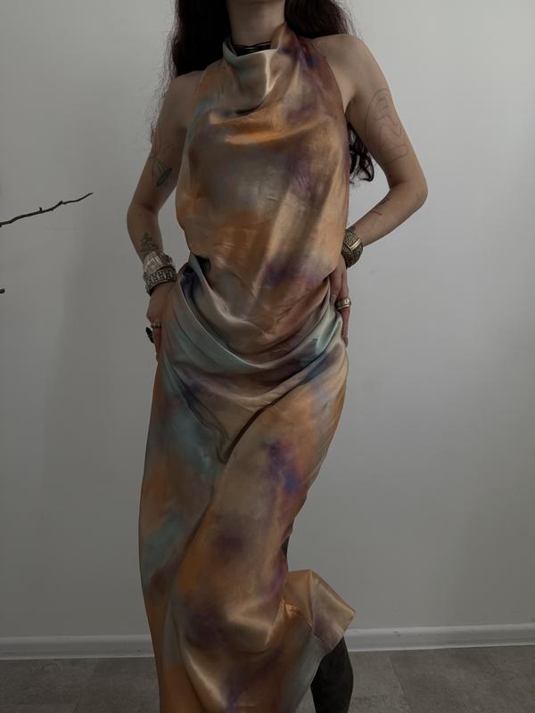 Сукня з віскози river island studio з відкритою спиною в підлогу