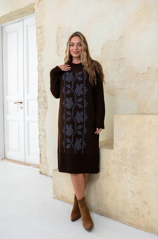 🤎 Когда хочется тепла и красоты одновременно 💫 Это вязаное платье окутывает нежностью, подчеркивает женственность и дарит уверенность в любой ситуации. Осень – пора влюбляться в детали 💕 🌿 Вязаное платье, которое станет любимым в этом сезоне! ✔ Теплый трикотаж ✔ Стильный узор ✔ Удобный свободный крой Идеально подходит для прогулок, работы или кофе с подругами ☕🍂 😍Теплое вязаное платье "Вербена" Мод. 1112 ▫️Материал:Вязаный🧶 трикотаж ▫️Страна производитель Украина🇺🇦 ▫️Размер:oversize 44-56 ▫️Состав пряжи 50% вовна, 50% акрил ▫️Сезон:Зима, Весна, Осень Рост девушка на фото 168 см Длина по спинке 105-107 см П. Об.гр 54-55 см