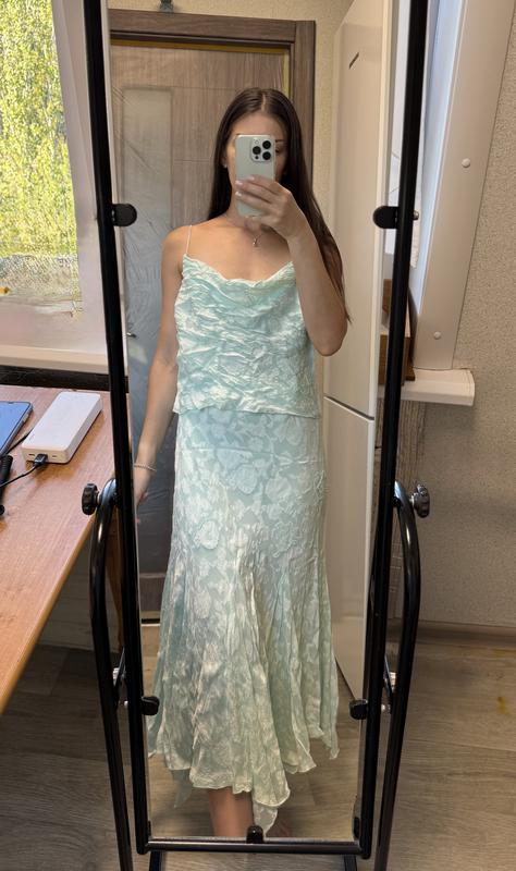 Неймовірна сукня із шовку в ідеальному стані, розшита бісером, ніжна, гарно сідає по фігурі. Розмір вказаний М, але на фото вдягнена на Хс, чудово сяде на С-М.