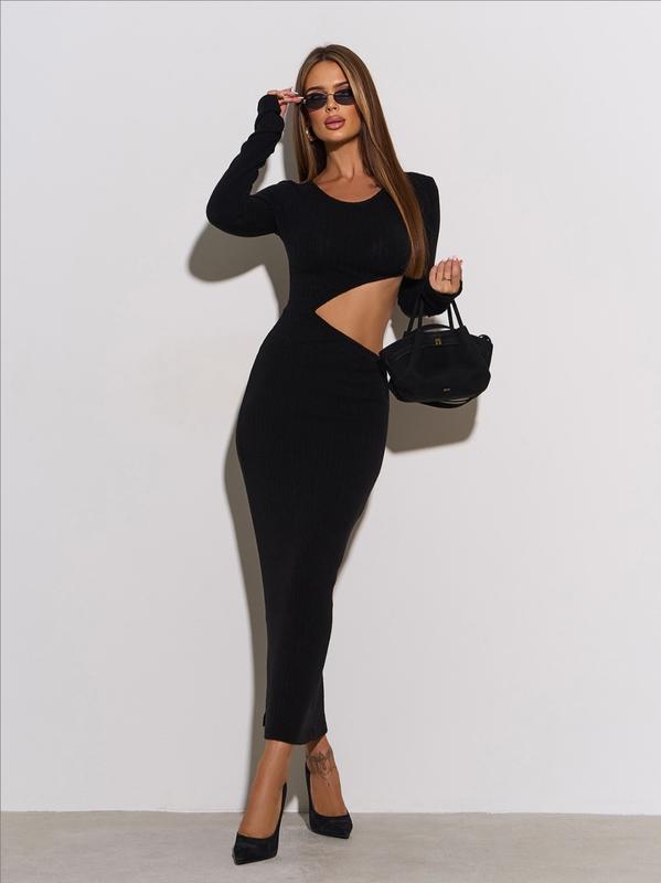 💥 ангоровое платье в рубчик с прямым облегающим кроем и макси длиной. Модель с закрытой горловиной и боковым объемным вырезом. Платье с длинными рукавами, декорированными вырезами для пальцев. По вырезу прошита резинка для прилегания. 🍃Материал:Ангора 🍃Состав:85%, ангора, 15%, эластан ✅Размер:S,M, L 🪡длина изделия:127см 🪡длина рукава:65см ✅Цвет:серый, черный, коричневый ✅Цена: 1490грн АртSV673Remi ‼️Сбор заказа 1-3дны