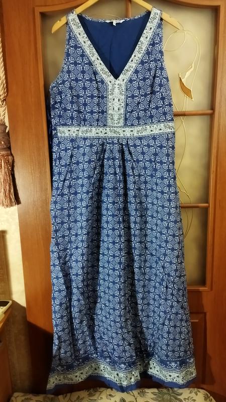 Платье коттоновое длинное с пайетками там вышивкой, без недостатков. ПолуОбхватГрудей-53см. ПОТалии-47см., длина по спинке -145см., без рукавов.