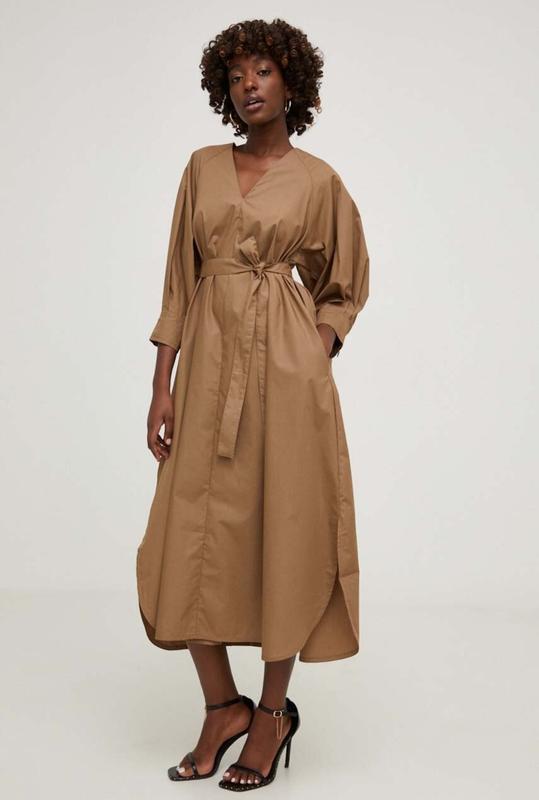 Хлопковое платье из коллекции Answear.Lab Расклешенный фасон Рукав три четверти, рукава с манжетами на застежке. Есть карманы и текстильный ремень. Длина рукава от горловины 56 см. Длина 122 подмышками 53 на бирке размер S/M, но подходит и на M/L Стан нового!