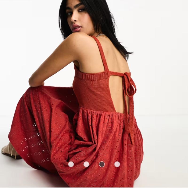интересный сарафан из прошвы и вязаного топа, спинка обнажена. низ хлопок плотный. имеет кармашки. на лето шикардос. состояние идеально.