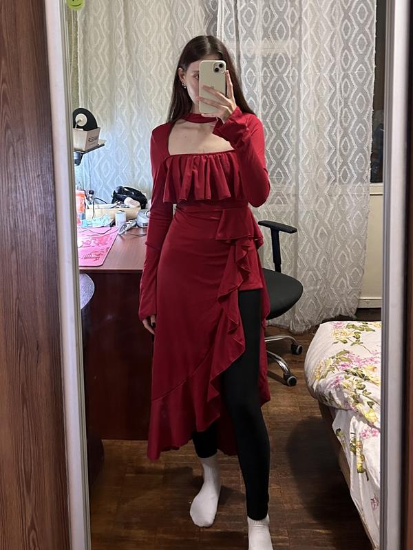 Сукня нова з пломбою. Дуже гарно сідає по фігурі, збоку розріз і спідниця, що гарно розкриває ніжку. Еластична, має підплічники. Розмір С-М. Мої параметри: ОГ - 84 см, ОТ - 68, ОБ - 94 см, зріст 170 см. На мене завелика у бедрах, на ОБ від 98 сяде ідеально