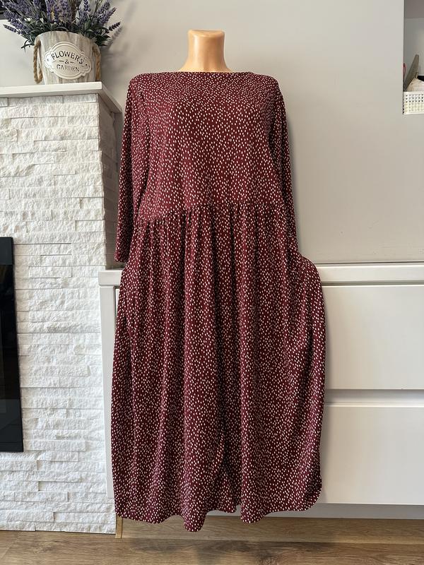 Розкішна сукня в горохи вільного фасону Р.16(ххл) Довжина120 Пог59 Талія 50 Бедра вільні