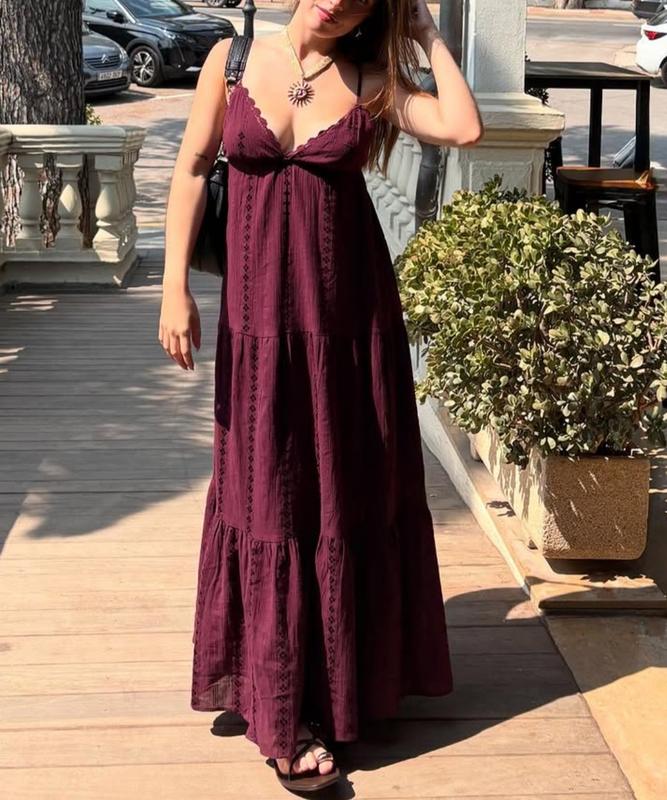 Длинное струящееся платье из хлопковой ткани с добавлением вискозы, тонкие регулируемые бретели. Открытая спина регулируется шнурками и завязками. Струящийся низ, oтделка вышивкой с цветочными мотивами в тон. Подкладка. Размер S-M Длина 115 см, полуобхват резинки под грудью 33 см.