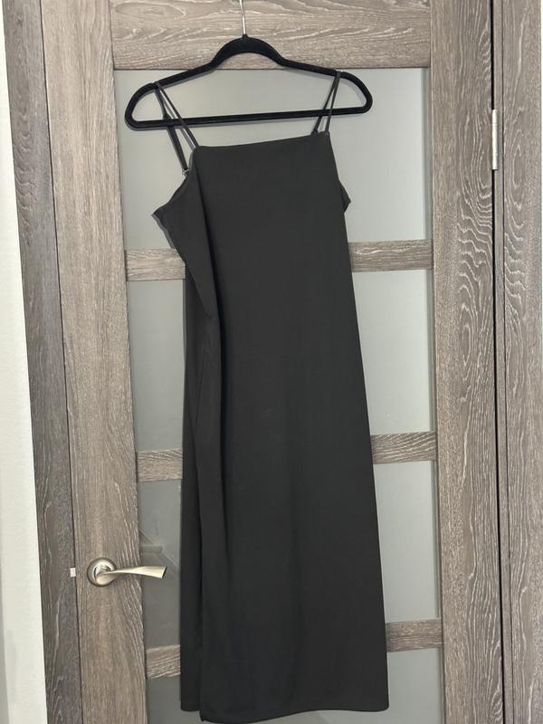 Платье черное длинное с разрезом На ноге