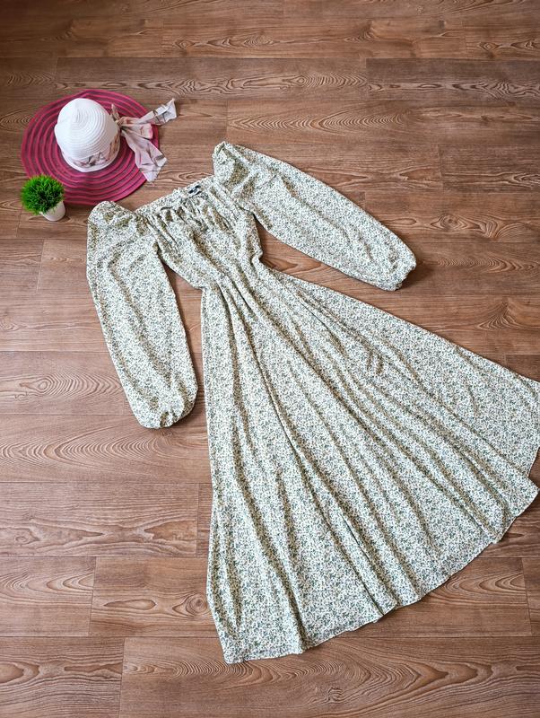 Это платье просто создано для того, чтобы подчеркнуть вашу женственность и романтичность. Стан - идеальный.Размер М. Легкая, приятная к телу ткань, лиф собран в драпировку, что позволяет носить платье как с открытыми плечами, так и с квадратным или лодочным вырезом. Длинные, объемные, собранные на манжетах рукава. По ноге имеет разрез. Замеры: длина по спинке 122 см. длина от плеча 130см. НОГ 40см.,зроблено корсетом НОТ 35см. Длина по низу 182 х 2 Если что-то интересное, запрашивайте. При необходимости, дополнительные фото скина в личные Разрез 67см. Если что-то интересное, запрашивайте. При необходимости, дополнительные фото скина в личные